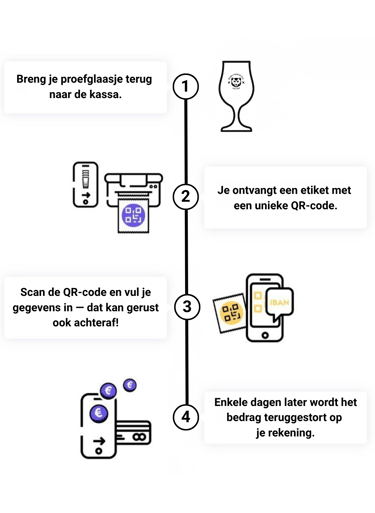 Wanneer je je proefglaasje terugbrengt naar de kassa, ontvang je een etiket met een unieke QR-code.