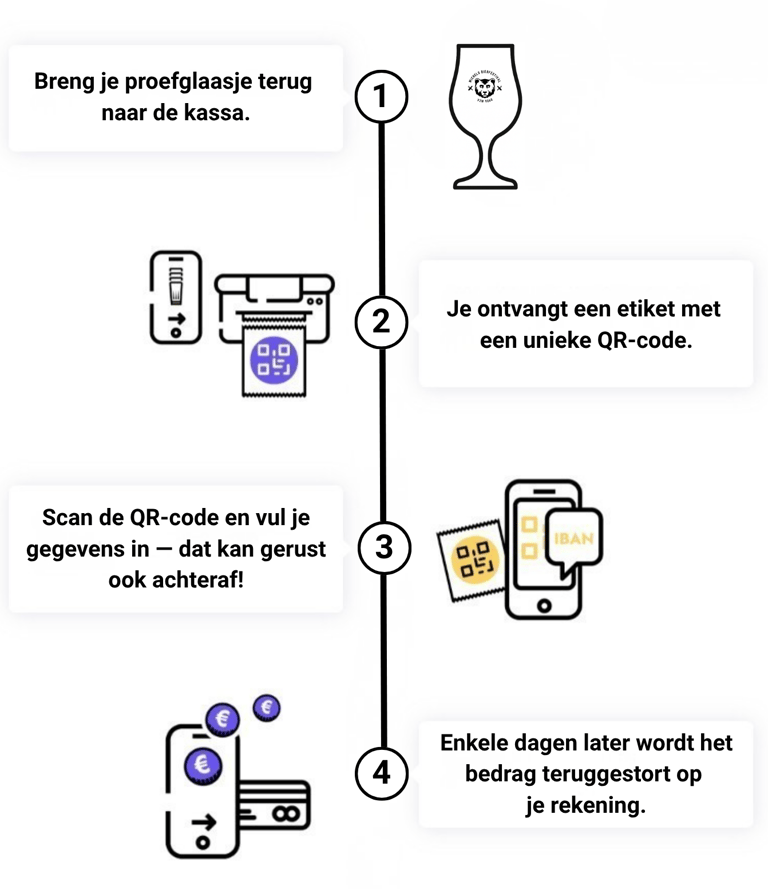 Heb je geen QR-scanner op je gsm? Geen probleem! Je kunt altijd surfen naar refund.wichelsbierfestival.be om je gegevens in te vullen en je waarborg terug te vragen.
